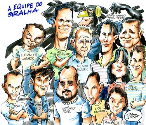 A equipe d'O Gralha circa 2001, no traço inconfundível do Bira Dantas.